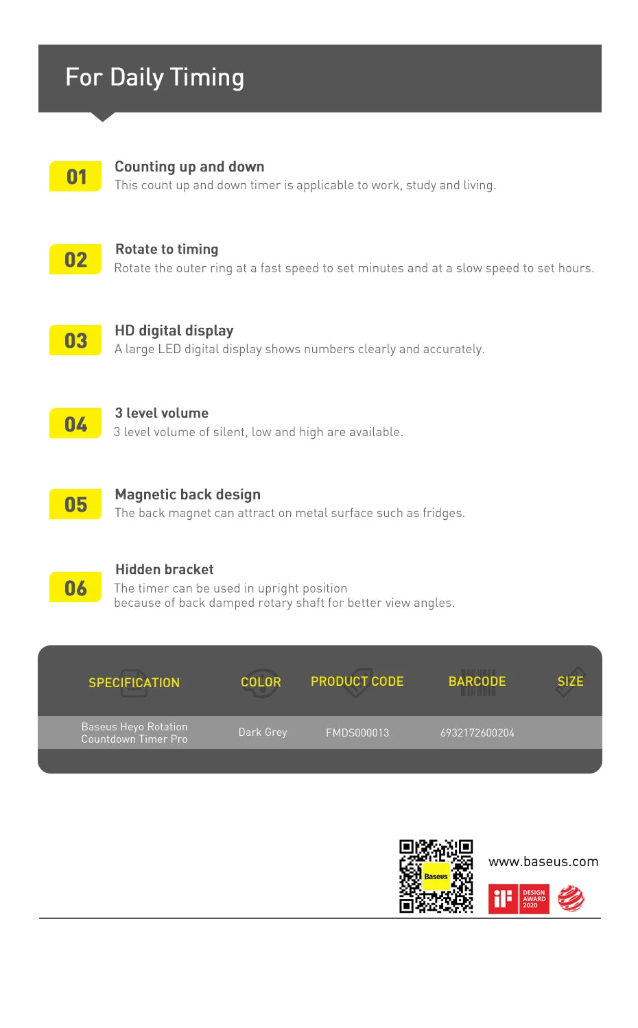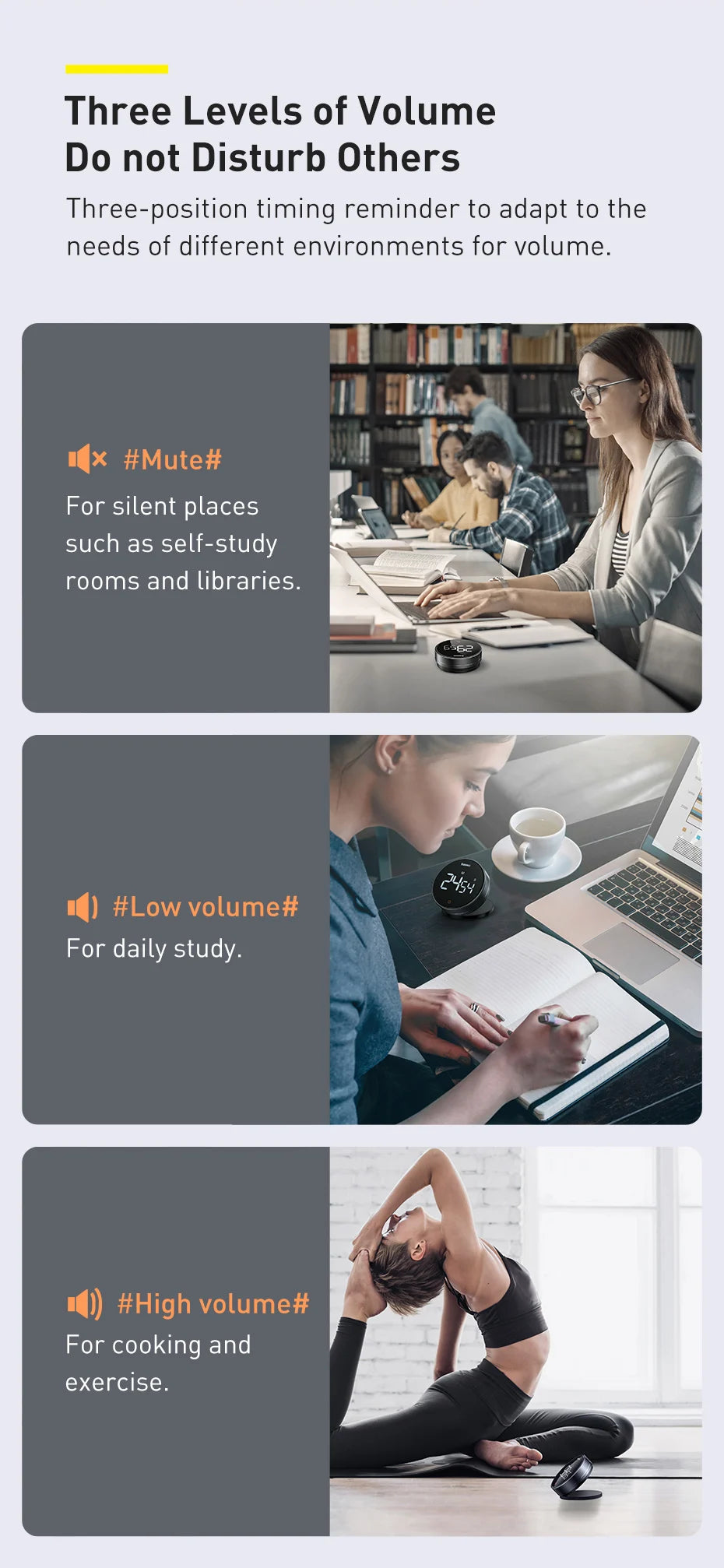 Behalten Sie Ihre Kochzeit mit dem magnetischen digitalen Küchentimer von Baseus perfekt im Blick. Mit großem LED-Display , einstellbarer Lautstärke und einer starken Magnetrückseite zur einfachen Befestigung ist er das ideale Werkzeug für präzises Kochen, Training oder Lernen. Kompakt, modern und hochfunktional – dieser Timer sorgt dafür, dass Sie keinen Moment verpassen.