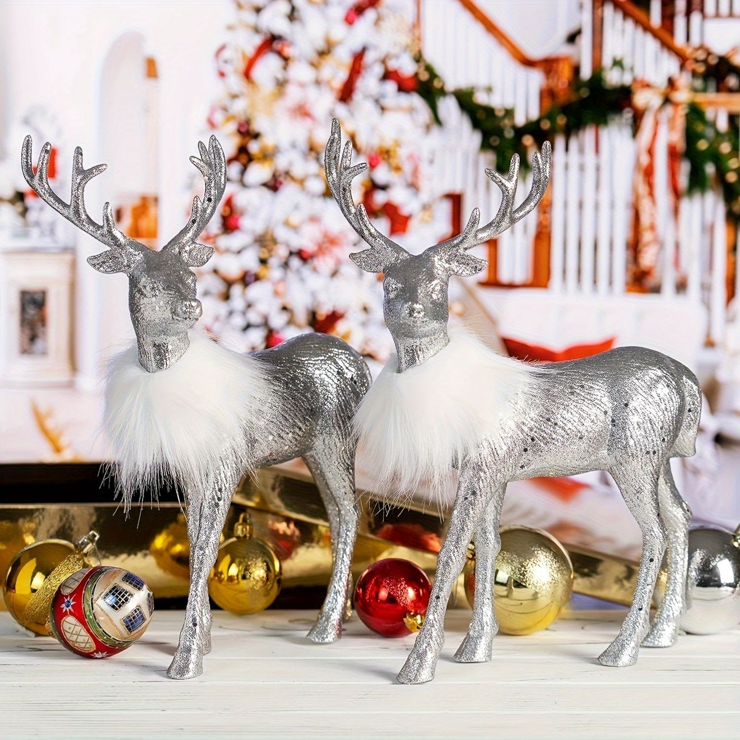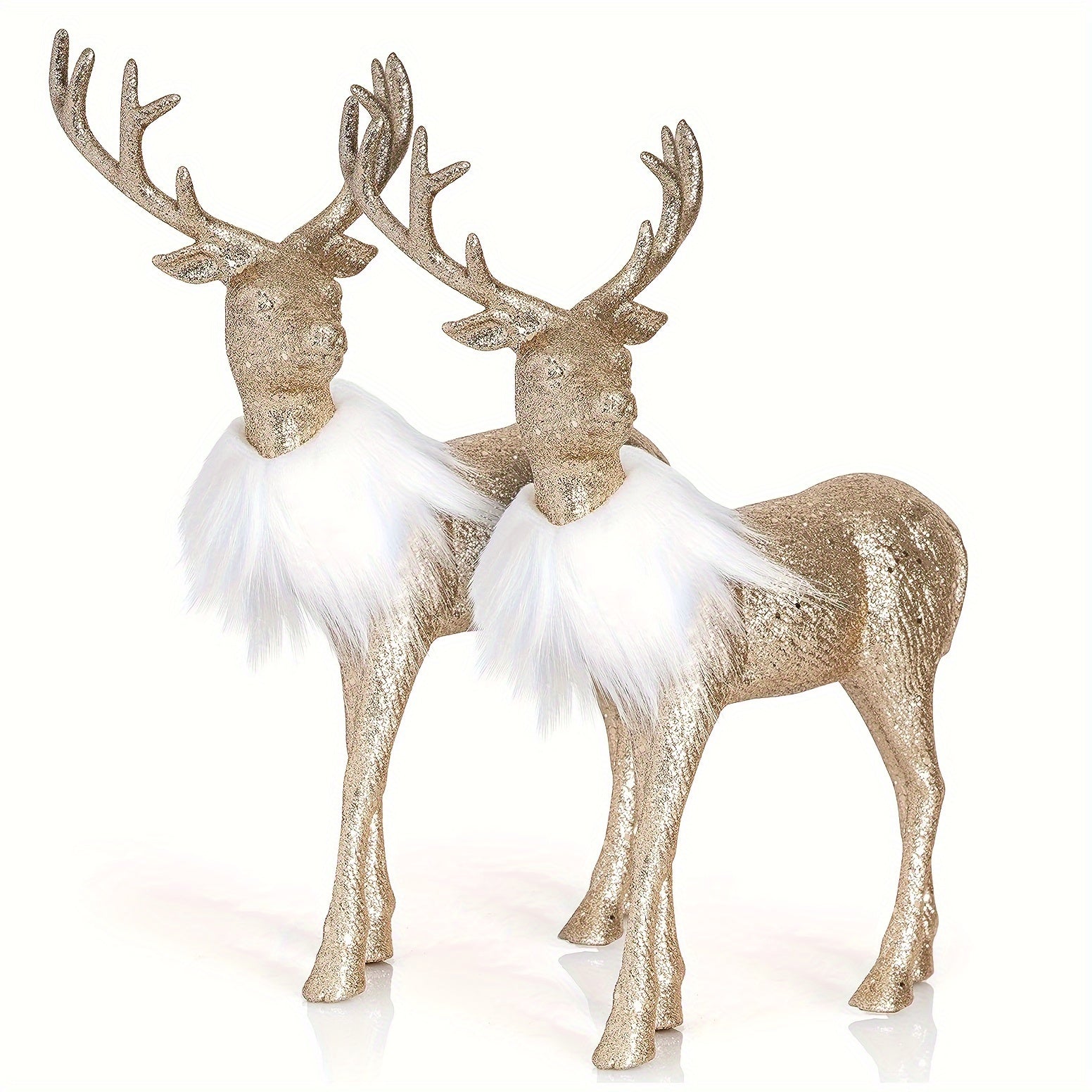 With their golden sparkle, soft faux-fur collars, and refined silhouette, these reindeer instantly elevate console tables, dining centerpieces, fireplace mantels, or Christmas tree surroundings. Their presence adds a luxurious charm — perfect for creating a magical winter atmosphere in any room.