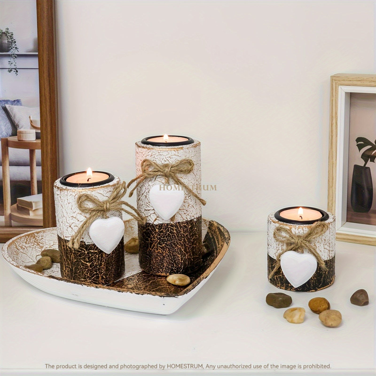 Each candle holder features a beautifully distressed wood finish, hand-tied rope bows, and a hanging ceramic heart — all displayed on a matching heart-shaped tray. Whether lit during a cozy evening, used as a romantic centerpiece, or styled for Christmas décor, this set instantly elevates any room with warmth and personality.